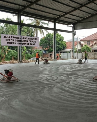 Depok adalah kota yang sedang berkembang pesat, dengan banyak area perumahan, gudang, dan workshop baru. Menggunakan jasa trowel profesional menjadi solusi terbaik agar hasil lantai beton Anda kuat, rapi, dan tahan lama.