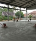 Beton dicor dan diratakan, lalu dibiarkan setengah kering agar siap diberi floor hardener. - Penaburan Material Floor Hardener